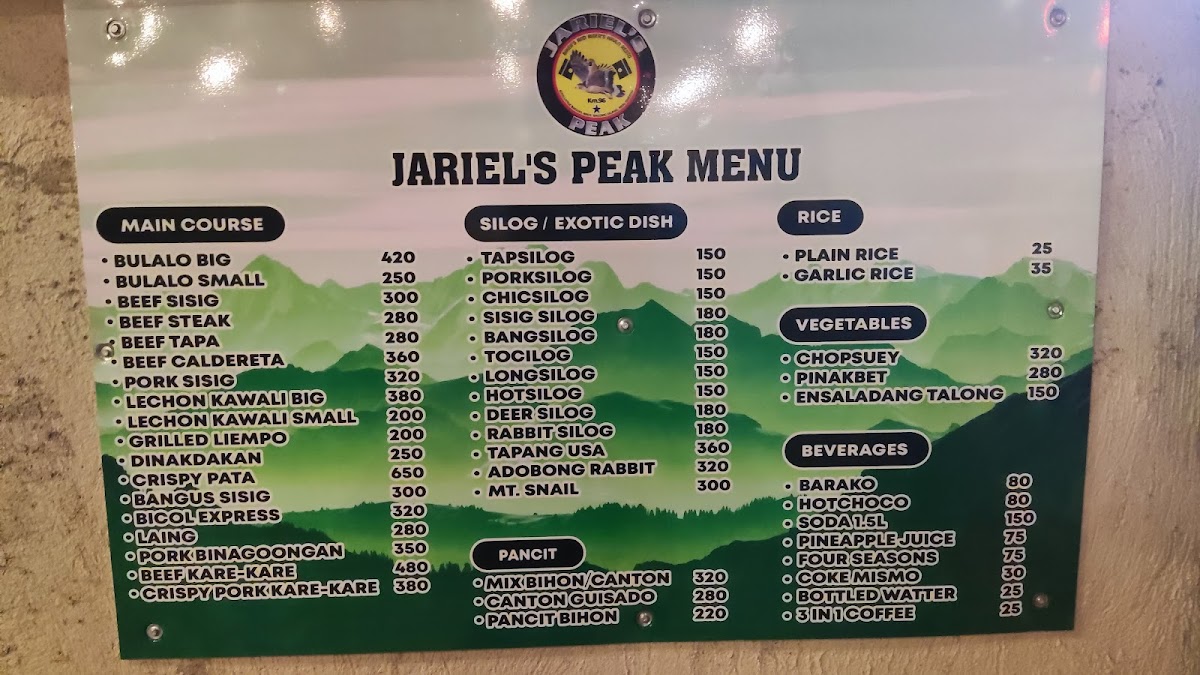 If you’re in the mood for a great meal in a cozy setting, look no further than Jariel's Peak Menu. Located at Km. 94 Sitio Little Baguio, Brgy. Magsaysay, Marcos Hwy, Quezon, Philippines, this hidden gem offers a mix of delicious comfort food with a local twist. From hearty breakfast plates to flavorful main courses, each dish is crafted to satisfy your cravings while giving you a taste of the best flavors in the area.